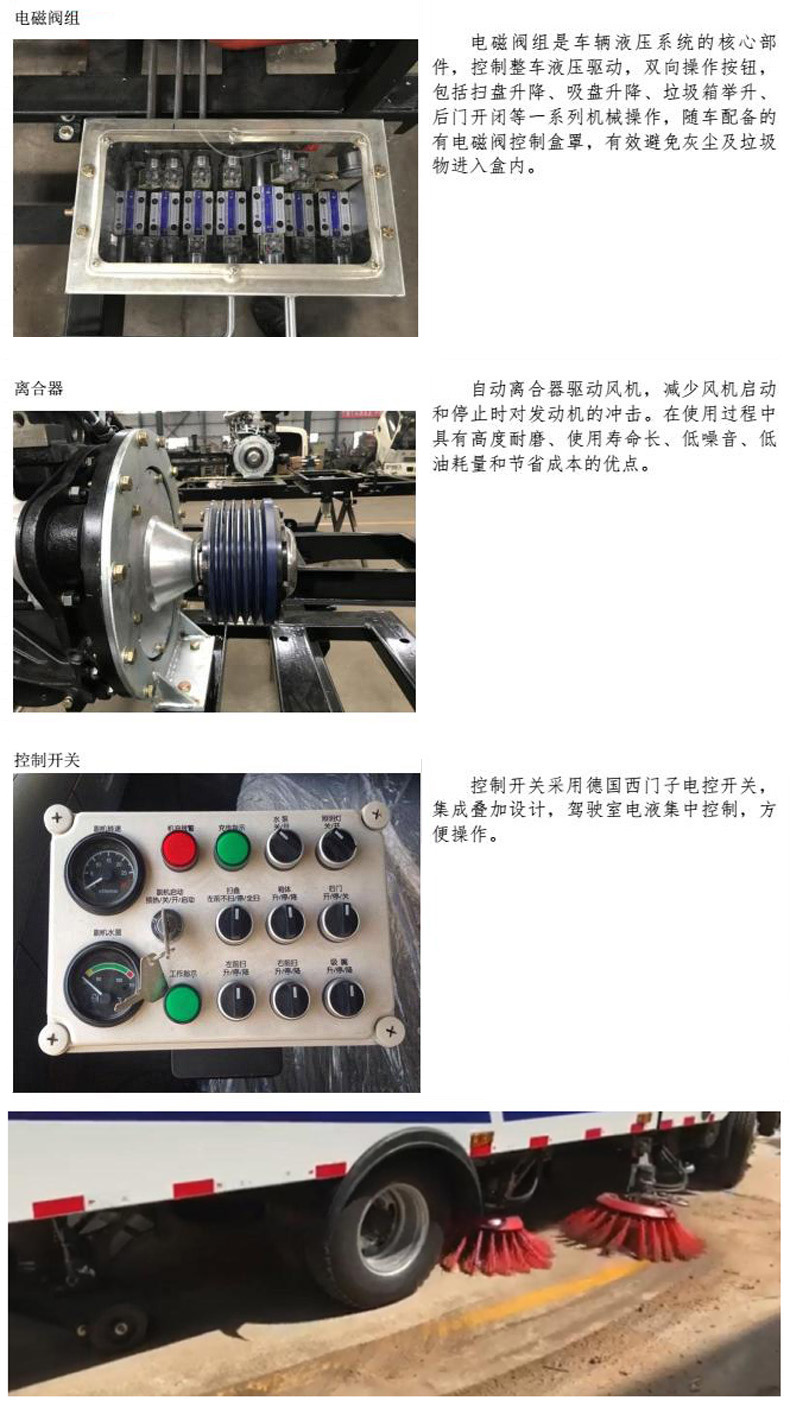 具有路面清洗、路面清掃、路緣清洗、路緣和路緣石立面洗刷、低壓沖洗、噴霧降塵等多種功能。
