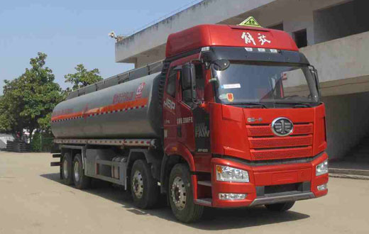 罐體有效容積:30.4立方米,危險貨物運輸車輛的類型:FL型車輛,類項號:3;罐體尺寸(長×長軸×短軸)(mm)為:8800×2470×1770;側、后防護裝置材質均為:Q235B,側、后防護均采用螺栓連接,后部防護裝置斷面尺寸(寬×高)80×150(mm),后部防護離地高度:500mm;選裝擋泥板樣式,選裝箱門樣式和管廂樣式;安裝具有衛星定位功能的行駛記錄儀,僅采用子午線輪胎排氣尾管前置,前置消聲器;前軸裝配盤式制動器;安裝限速裝置,限速79km/h的底盤.ABS系統生產廠家: 長春瑞立科密汽車電子有限公司,型號:CM4XL;油耗申報值(L/100km)與發動機對應關系:37.65(CA6DK1-32E6),38.23(CA6DL6-36E6).該車后軸為采用空氣懸架.轉向輪安裝爆胎應急防護裝置.