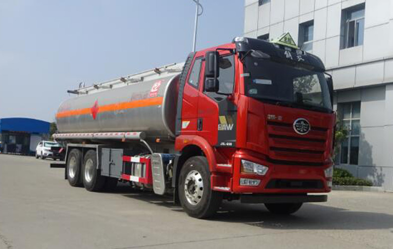 罐體總容量:21.5立方米,罐體有效容積:20.5立方米,危險貨物運輸車輛的類型為FL型,介質zui大密度735千克/立方米;罐體尺寸(長×長軸×短軸)(mm)為:7300×2300×1650,僅采用4800+1350mm軸距;側、后防護裝置材料材質:Q235B,側、后防護均采用螺栓連接,后防護裝置斷面尺寸為(mm):80×150,后部防護離地高度:400mm;選裝駕駛室,選裝管箱樣式,選裝尾部工具箱樣式;安裝具有衛星定位功能的行駛記錄儀,排氣管前置,安裝前輪盤式制動器和限速裝置,限速79km/h,僅采用底盤子午線輪胎;安裝EBS,EBS型號:EBS3,EBS系統生產廠家:威伯科汽車控制系統(中國)有限公司;發動機型號及油耗值(L/100km)分別為:CA6DK1-32E6(37.47),CA6DK1-28E6(37.47),CA6DK1-32E61(37.47),CA6DK1-28E61(37.47).該車后軸采用空氣懸架;轉向輪安裝爆胎應急防護裝置.該車型可選裝ETC車載裝置.