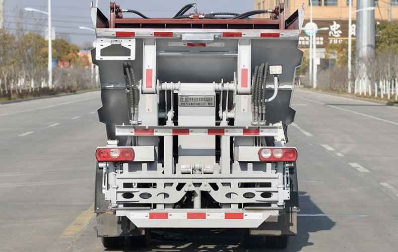 采用刮板滑板壓縮裝置,可對(duì)垃圾進(jìn)行壓縮,提高垃圾裝載能力,降低運(yùn)營(yíng)成本。