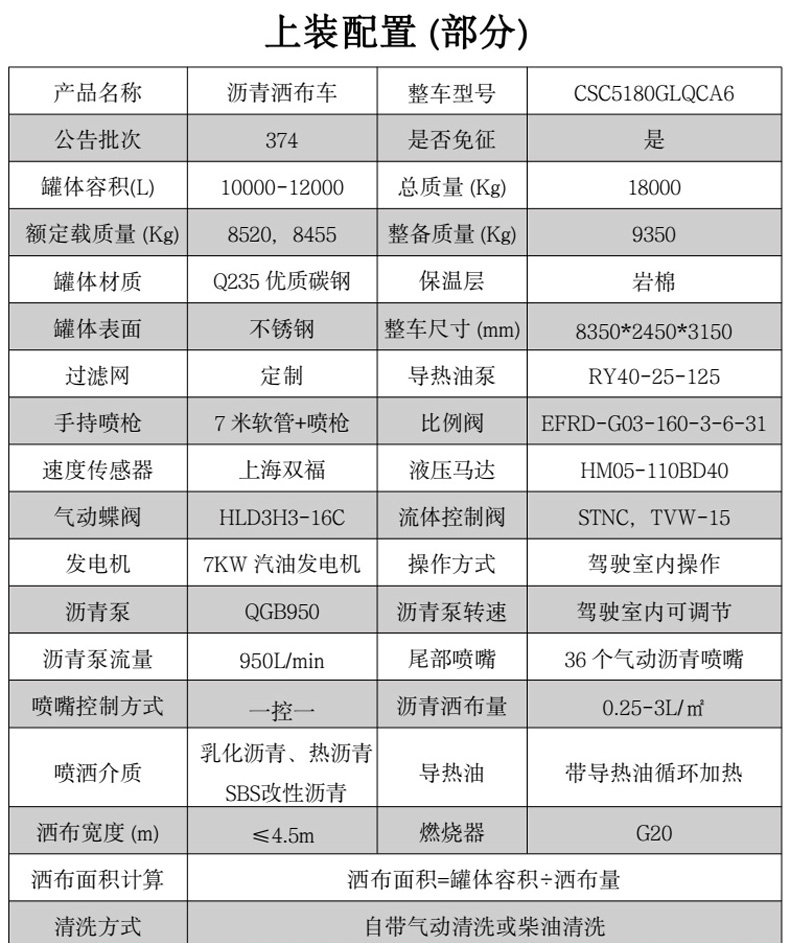 > 產(chǎn)品中心 > 瀝青灑布車 瀝青灑布車_解放J63智能型灑布車(10-12立方)★13908669111★楚勝牌CSC5180GLQCA6瀝青灑布車,采用解放CA1180P62KL2A1E6Z底盤改裝而成,罐體材質(zhì)為優(yōu)質(zhì)碳鋼板,巖板保溫層,罐體表面不銹鋼材質(zhì),該灑布車由汽車底盤、瀝青 罐體、瀝青泵送及噴灑系統(tǒng)、液壓系統(tǒng)、燃燒及導(dǎo)熱油加熱系統(tǒng)、控制系統(tǒng)、氣動(dòng)系統(tǒng)、操作平臺(tái)構(gòu)成。該車操作簡(jiǎn)便,用于修筑高等級(jí)公路瀝青路面底層的透層油、防水層、粘結(jié)層的灑布。更多瀝青灑布車盡在:www.pkubrand.cn