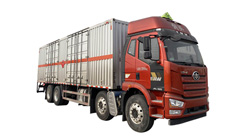 1、該車為危險品運輸車,運輸具有獨立容器(瓶)包裝的物品,運送危險物品類項號:9。廂體頂部封閉,不可開啟。2、側、后防護材料為Q235,側防護螺栓連接,后防護焊接,截面尺寸(mm)120×50,下邊緣離地高335mm。選裝無后尾板時,后防護焊接,截面尺寸(mm)120×50,下邊緣離地高335mm。尾板收起狀態水平長度為290mm,尾板質量為550kg。3、僅選用排氣管前置、限速裝置(限速79km/h)、前輪盤式制動及子午線輪胎的底盤,轉向輪安裝輪胎爆胎應急防護裝置,后軸采用空氣懸架。安裝帶有衛星定位功能的行駛記錄儀。EBS型號/生產廠家:EBS3/威伯科汽車控制系統(中國)有限公司。發動機/油耗值(L/100km)對應關系為:CA6DK1-32E61/38.16,CA6DK1-28E61/38.16。選裝ETC。隨底盤選裝駕駛室。廂體側面選裝開門型式及位置,選裝不帶側開門,選裝平面結構,選裝后門結構;廂體前后及側面選裝開百葉窗,選裝尾板樣式,選裝無后尾板。僅選用1900+4500+1350mm軸距。發動機凈功率值:CA6DK1-32E61為236kW,CA6DK1-28E61為206kW。