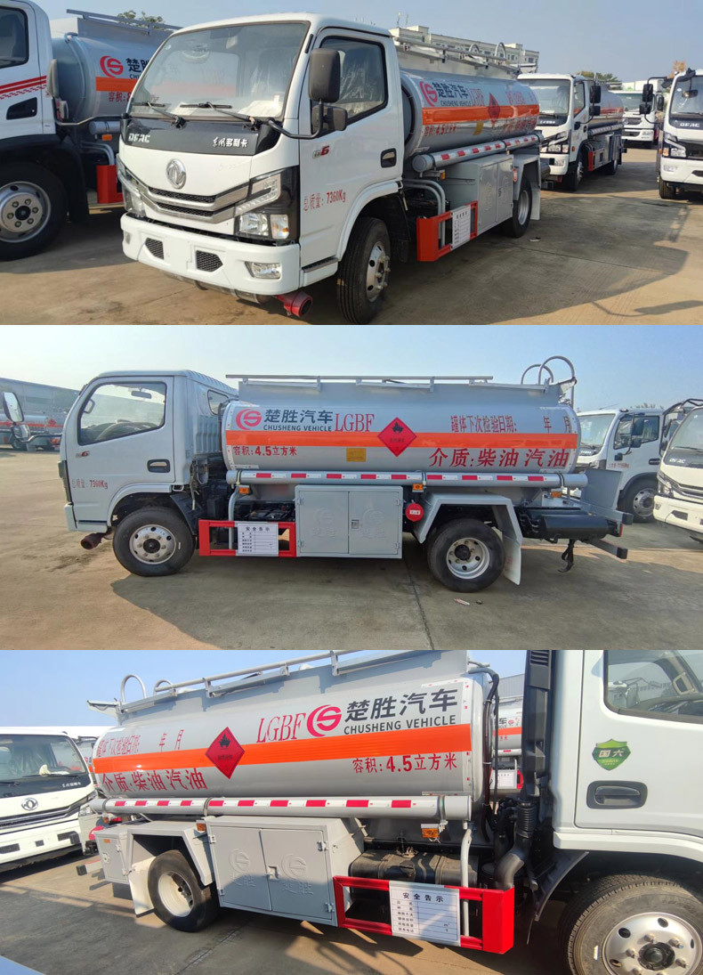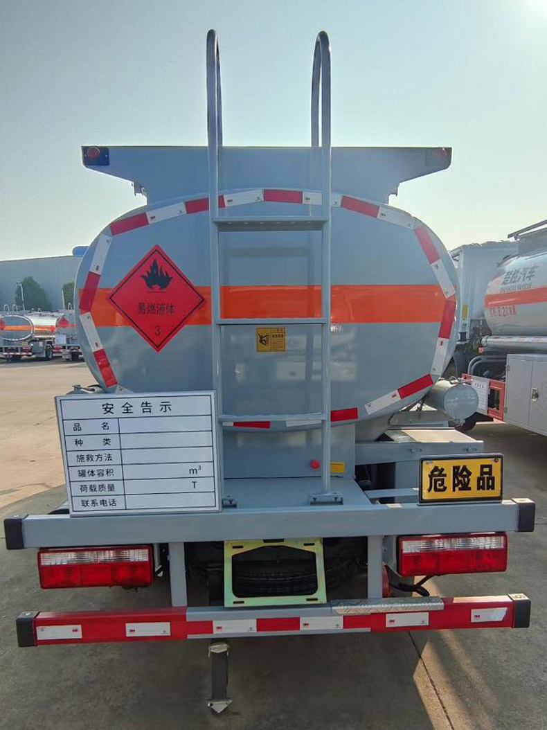 此款CSC5075GJY6A加油車罐體材質為優質碳鋼板材生產制作,板材均為國內一流鋼材廠家(寶鋼,武鋼)提供,封頭、阻浪板、隔倉板均采用蝶形,其中封頭及隔倉板厚度為5mm,筒體及阻浪板厚度為4.2mm,完全滿足國家標準GB18564.1-2019《道路運輸液體危險貨物罐式車輛 第1部分:金屬常壓罐體技術要求》的設計要求。整車帶全套嘉隆牌歐標卸油系統(包含有油氣回收,氣動組合開關,防溢流探桿及五芯插座,歐標人孔蓋,緊急切斷閥等),有效控制罐體的裝油量,帶海底閥聲光報警系統,有效保證運輸的安全性,罐頂帶有活動護欄及防滑網,保障惡劣天氣下車頂作業人身安全。標配卸料箱1個,加油機箱1個,工具箱1個,4Kg滅火器2個,整車貼有易燃液體標識,安全告示等。