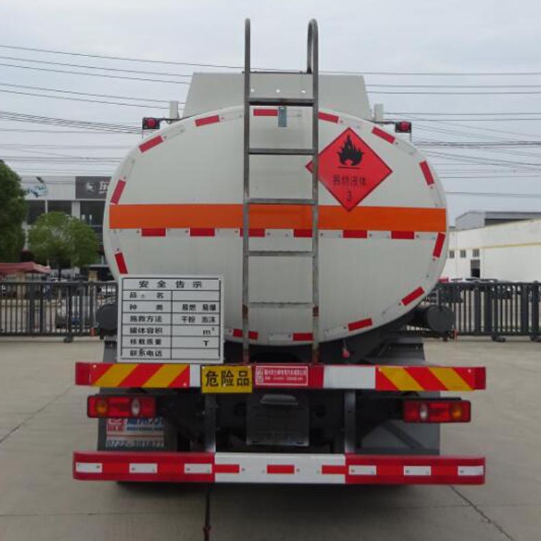 罐體總?cè)萘?14.4立方米,罐體有效容積:13.7立方米,危險(xiǎn)貨物運(yùn)輸車輛的類型為FL型,介質(zhì)zui大密度800千克/立方米,罐體尺寸(長×長軸×短軸)(mm)為:5700×2160×1500;軸距/后懸對應(yīng)關(guān)系為(mm):4700/2360,5100/1960;側(cè)、后防護(hù)裝置材料材質(zhì):Q235B,側(cè)、后防護(hù)均采用螺栓連接,后防護(hù)裝置斷面尺寸為(mm):80×150,后部防護(hù)離地高度:480mm;隨底盤選裝駕駛室及后處理器外觀,選裝側(cè)防樣式及炮筒樣式,選裝后視廓燈支架及尾側(cè)出口箱樣式;安裝具有衛(wèi)星定位功能的行駛記錄儀,排氣管前置,安裝前輪盤式制動器和限速裝置,限速79km/h,僅采用底盤子午線輪胎;安裝EBS,型號/生產(chǎn)廠家為:EBS 5/東科克諾爾商用車制動系統(tǒng)(十堰)有限公司;發(fā)動機(jī)型號與油耗值(L/100km)的對應(yīng)關(guān)系為:B6.2NS6B210(25.9),B6.2NS6B230(25.9),D4.0NS6B195(26.6),D4.0NS6B170(26.6),YCK05230-61(24.9),YCS06245-60A(26.3),YCS04200-68(25.8);該車后軸采用空氣懸架;轉(zhuǎn)向輪安裝bao胎應(yīng)急防護(hù)裝置.該車型可選裝ETC車載裝置;