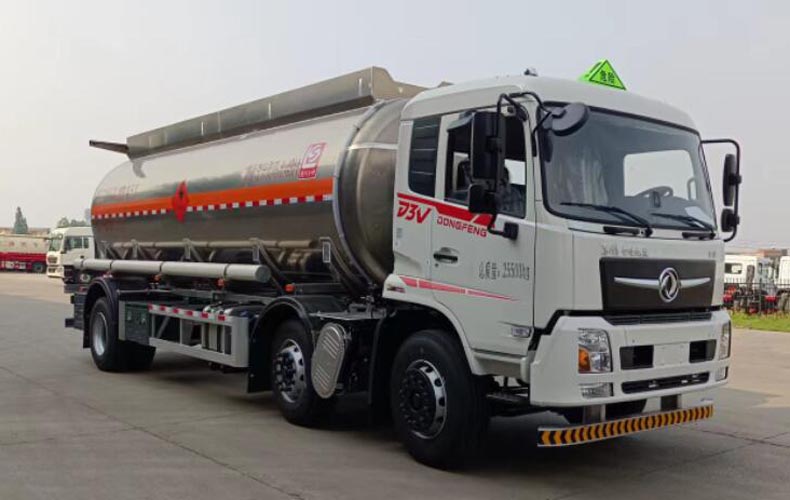 罐體總容量:21.5立方米,罐體有效容積:20.4立方米,危險貨物運輸車輛的類型為FL型,介質zui大密度830千克/立方米;罐體尺寸(長×直徑)(mm)為:7400×2000;僅采用1995+5000mm軸距;隨底盤選裝駕駛室及后處理器外觀,選裝側防護工具箱樣式,選裝尾部出口箱樣式,選裝管廂樣式,選裝罐頂保護裝置樣式,選裝后爬梯位置;側、后防護裝置材料材質:Q235B,側、后防護均采用螺栓連接,后防護裝置斷面尺寸為(mm):80×150,后部防護離地高度:480mm;安裝具有衛星定位功能的行駛記錄儀,排氣管前置,安裝前盤制動器和限速裝置,限速80km/h,僅采用底盤子午線輪胎;安裝EBS,EBS型號/廠家:EBS5/東科克諾爾商用車制動系統(十堰)有限公司;發動機與油耗申報值(L/100km)對應關系為B6.2NS6B260(33.44),YCS06245-60A(31.32);該車后軸采用空氣懸架;轉向輪安裝bao胎應急防護裝置;選裝直接供電式ETC車載裝置.