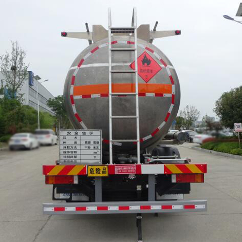 罐體總容量:26.3立方米,罐體有效容積:25.0立方米,危險貨物運輸車輛的類型為FL型,介質zui大密度800千克/立方米;罐體尺寸(長×直徑)(mm)為:9000×2000;僅采用1995+4500+1350mm軸距;隨底盤選裝駕駛室,選裝側防護工具箱樣式,選裝尾部出口箱樣式,選裝管廂樣式,選裝罐頂保護裝置樣式及爬梯位置;側防護裝置材料材質:鋁合金6061,后防護裝置材料材質:Q235B,側、后防護均采用螺栓連接,后防護裝置斷面尺寸為(mm):80×150,后部防護離地高度:450mm;安裝具有衛星定位功能的行駛記錄儀,排氣管前置,安裝前輪盤式制動器和限速裝置,限速80km/h,僅采用底盤子午線輪胎;安裝EBS,EBS型號/生產廠家:EBS5/東科克諾爾商用車制動系統(十堰)有限公司.發動機型號與油耗值(L/100km)的對應關系為:D6.7NS6B320(30.4),L9NS6B340(32.1),L9NS6B400(32.35),L9NS6B430(32.35),YCK08350-60(30.87);該車后軸采用空氣懸架;轉向輪安裝bao胎應急防護裝置.該車型可選裝ETC車載裝置;