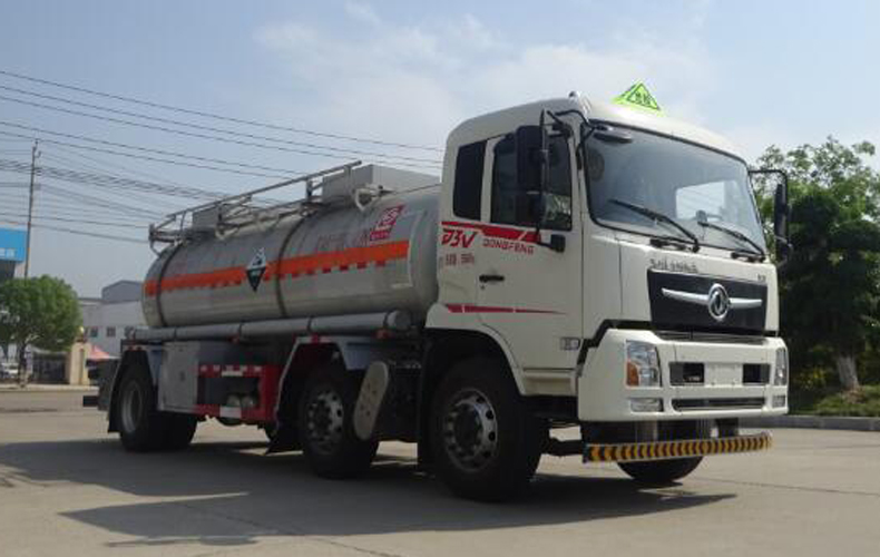 油罐車_化工車_東風D3V小三軸16噸腐蝕性物品罐式運輸車產品名稱:SLS5263GFWX6B型腐蝕性物品罐式運輸車,采用東風小三軸DFV1263GW6DJ1底盤改裝而成,罐體總容量:12.5立方米,罐體有效容積:11.9立方米;危險貨物運輸車輛的類型為AT型,介質zui大密度1340千克/立方米;楚勝汽車集團有限公司腐蝕性物品罐式運輸車公司網站:www.pkubrand.cn