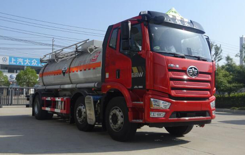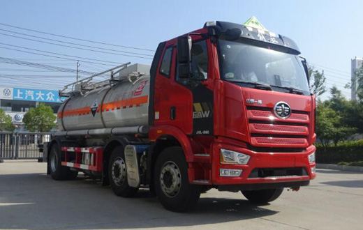 油罐車_解放小三軸腐蝕性物品罐式運輸車★13908669111★醒獅牌SLS5263GFWC6A型腐蝕性物品罐式運輸車采用解放CA5260GYYP62K1L7T3E6底盤改裝而成,罐體總容量:14.8立方米,罐體有效容積:14.0立方米,危險貨物運輸車輛的類型為AT型,介質zui大密度1100千克/立方米;更多油罐車,腐蝕性物品罐式運輸車盡在:www.pkubrand.cn