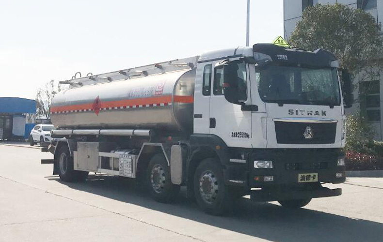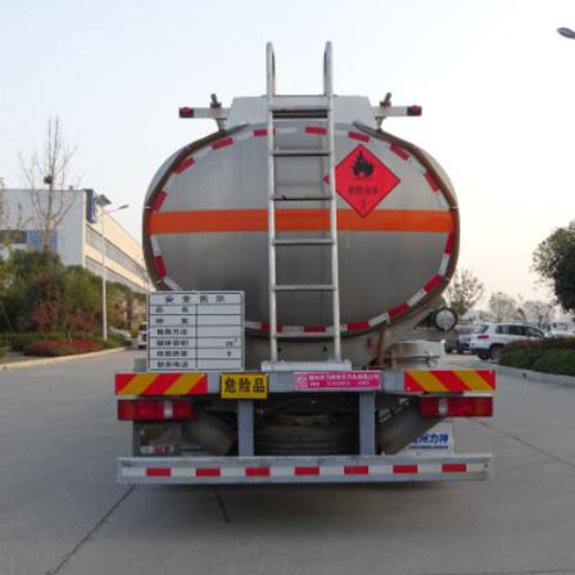 罐體總容量:24.7立方米,有效容積23.5立方米,危險貨物運輸車輛的類型為FL型,介質zui大密度700千克/立方米;罐體尺寸(長×長軸×短軸)(mm)為:7500×2500×1700;僅采用1800+5000mm軸距;側、后防護裝置材料材質:Q235B,側、后防護均采用螺栓連接,后防護裝置斷面尺寸為(mm):80×150,后部防護離地高度:400mm;隨底盤選裝駕駛室及前保險杠,選裝尾部無落水管及尾部帶出口箱;選裝箱門樣式及管箱樣式;安裝具有衛星定位功能的行駛記錄儀,排氣管前置,安裝前盤制動器和限速裝置,限速80km/h,僅采用底盤子午線輪胎;安裝EBS,EBS系統控制器生產企業/型號為威伯科(上海)管理有限公司/EBS3;采用發動機型號及油耗值(L/100km)為:25-60(33.9),MC07.27-60(33.9),MC07.31-60(33.9),MC07H.35-60(34.1),WP7H220E62(33.9),WP7H245E62(33.9),WP7H270E62(33.9),WP7H300E62(33.9),WP7H320E62(33.9);該車后軸采用空氣懸架;轉向輪安裝bao胎應急防護裝置;選裝直接供電式ETC車載裝置.