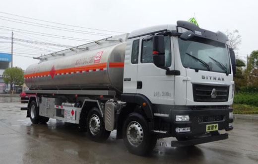 罐體總容量:20.7立方米,有效容積19.7立方米,危險貨物運輸車輛的類型為FL型,介質zui大密度830千克/立方米;罐體尺寸(長×長軸×短軸)(mm)為:7500×2200×1600;僅采用1800+5000mm軸距;側、后防護裝置材料材質:Q235B,側、后防護均采用螺栓連接,后防護裝置斷面尺寸為(mm):80×150,后部防護離地高度:430mm;隨底盤選裝駕駛室及前保險杠,選裝尾部帶出口箱;選裝箱門樣式及管箱樣式;安裝具有衛星定位功能的行駛記錄儀,排氣管前置,安裝前盤制動器和限速裝置,限速80km/h,僅采用底盤子午線輪胎;安裝EBS,EBS系統控制器生產企業/型號為威伯科(上海)管理有限公司/EBS3;采用發動機型號及油耗值(L/100km)為:MC07.25-60 (33.9),MC07.27-60(33.9),MC07.31-60(33.9),MC07H.35-60(34.1),WP7H220E62(33.9),WP7H245E62(33.9),WP7H270E62(33.9),WP7H300E62(33.9),WP7H320E62(33.9);該車后軸采用空氣懸架;轉向輪安裝爆胎應急防護裝置;選裝直接供電式ETC車載裝置.